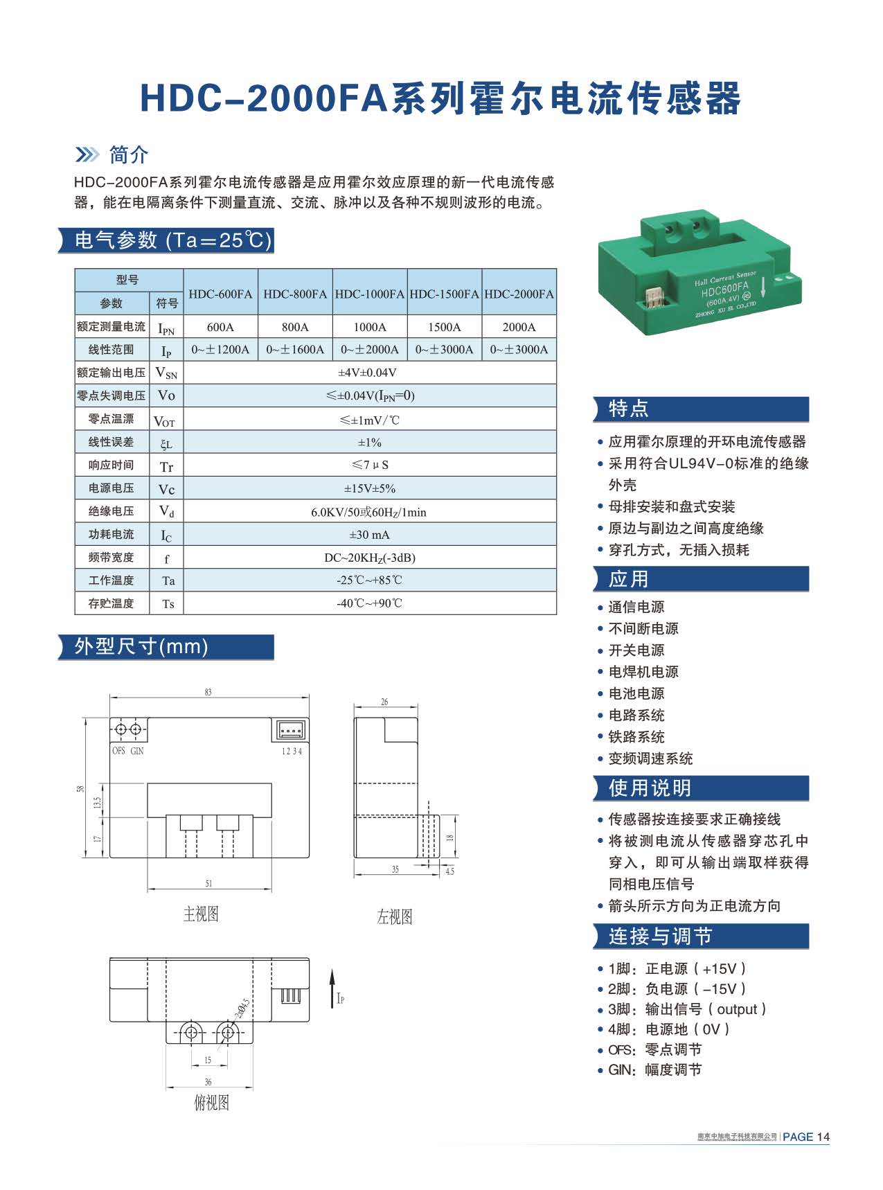 HDC-600FA系列霍爾電流傳感器是應(yīng)用霍爾效應(yīng)原理的新一代電流傳感器,能在電隔離條件下測量直流、交流、脈沖以及各種不規(guī)則波形的電流。